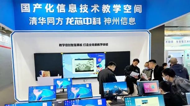 联合展区展示了以“龙芯3A5000芯片+清华同方整机硬件”为技术底座的一体化方案。在此基础上,BB贝博艾弗森官网提供了集成、适配和迁移等服务,成功整合了统信软件、麒麟软件、金山WPS、永中软件、极域软件和极坐标软件等140余款软件,探索出了一系列适用于教育领域的符合国家信创要求的解决方案。从CPU处理芯片到整机硬件;从基础操作系统软件到教学管理软件办公软件、编程教学软件等等实现了国产自主化,可以满足中小学信息技术基础教学空间中的实际使用需求。