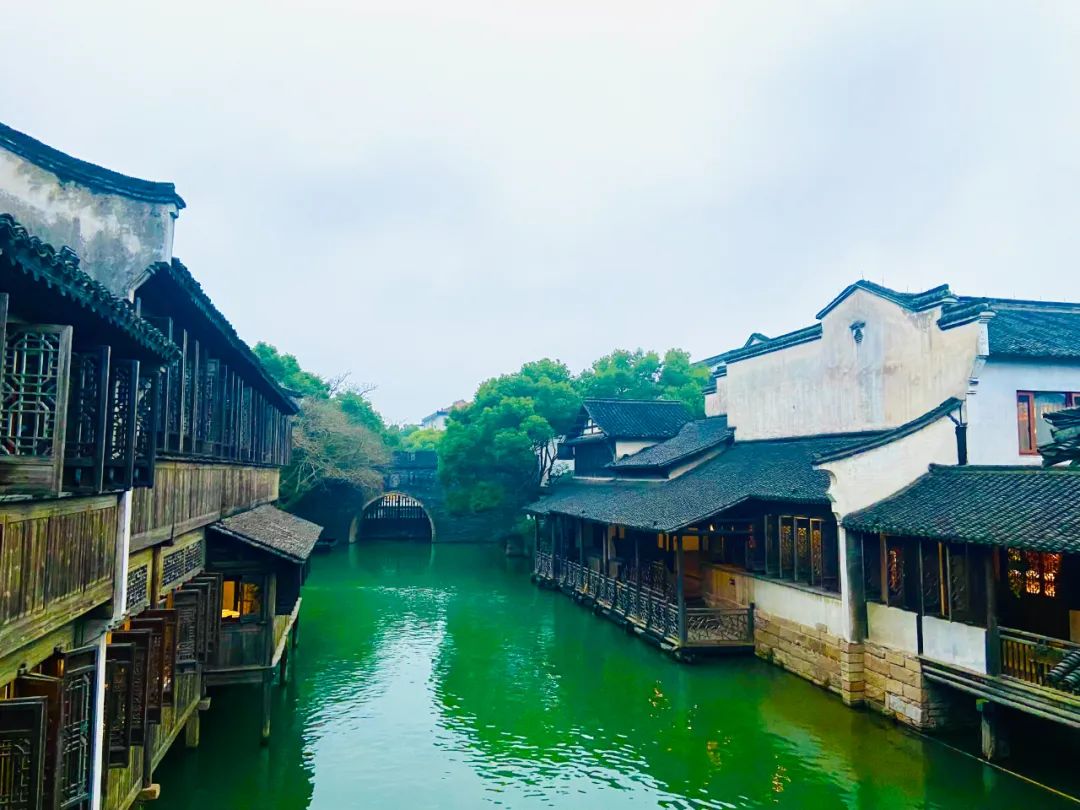 古老的民居、桥梁、街道、运河,船行小巷而后走过石板路,江南水乡自带的婉约会让风里都充满温柔的味道。