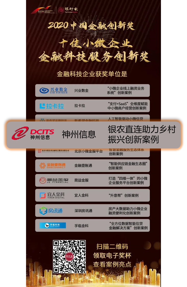 BB贝博艾弗森官网“银农直连助力乡村振兴创新案例”,荣获“2020中国金融创新奖——十佳小微企业金融科技服务创新奖”。